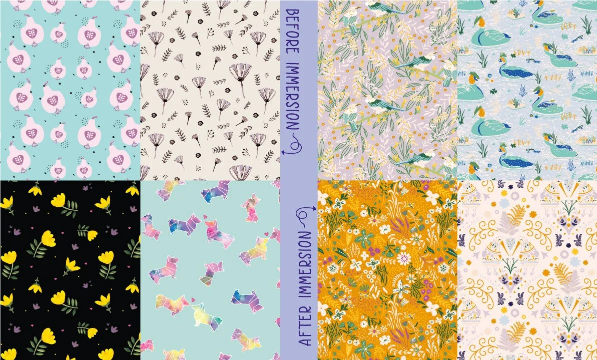 Ever wondered how a single course can change your entire path? Let me share my story with you. Back at the end of 2019, I discovered the world of surface pattern design, and it opened doors to a world I never knew existed. This blog is about that journey – how Bonnie Christine's Immersion Course not only transformed my artistic skills but also reshaped my entire professional and personal outlook. From my initial skepticism to becoming a passionate surface designer.